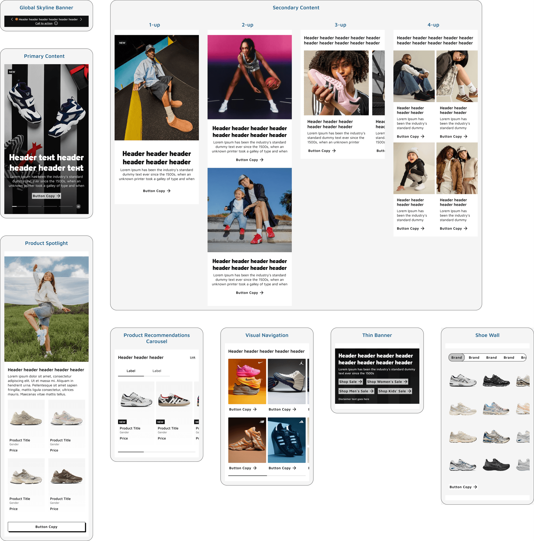 This project began with infusing Foot Locker brand magic into the website experience through a strategic redesign of the brand's design system atoms. Leveraging these foundations, we delivered a suite of flexible, authorable content features designed to storytell around product curation, brands partners, and special projects.